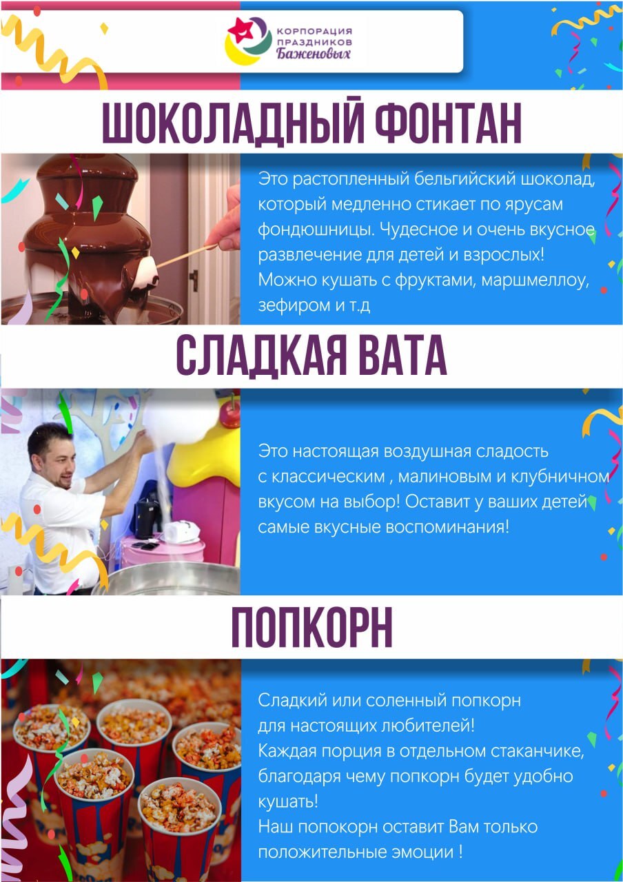 Помимо аренды игровой комнаты, мы рады вам предложить множество программ праздника и услуг.